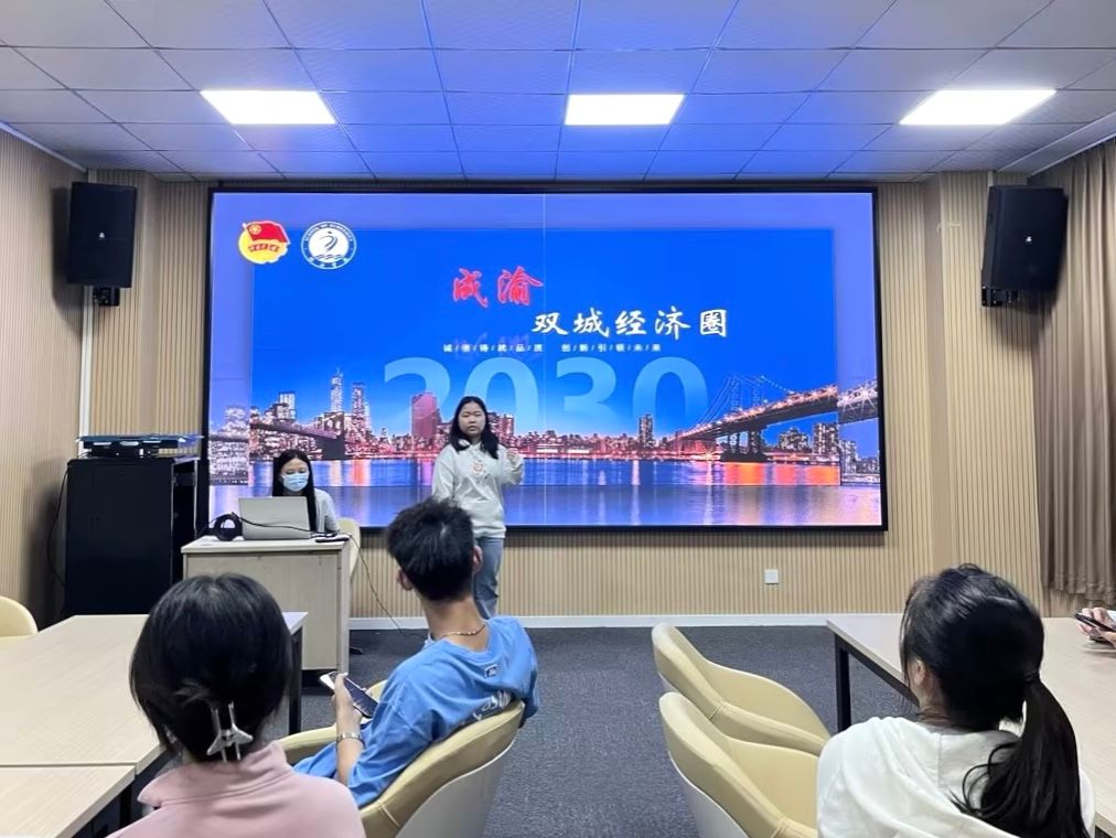 培训会议开始后,组织负责人黎亚男同学以“成渝地区双城经济圈建设”为主题展开培训。她分享到,作为经院学子,我们要密切关注经济热点,拓宽自身学习视野,丰富自身所学。随后,组织负责人何渤杰同学就“总体国家安全观”主题对参会人员展开了相关培训。通过对总体国家安全观的核心要义和“十点坚持”的阐述,他向我们进一步普及了坚持国家总体安全观的重要性,呼吁我们员工干部要坚定自身信念,树立崇高理想,不断为中华民族的伟大复兴贡献青春力量。紧接着,组织负责人皮薏暄同学从“树立正确的就业观、择业观”进行了就业技巧分享。她结合切身经历与对外了解,对参会人员提供了相关就业建议与指导,鼓励同学们保持学习热情,争取在老员工活中参与各类实践活动,积累工作经验。