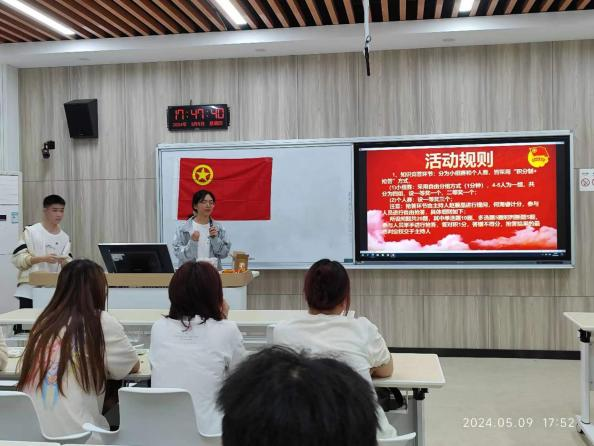 为深入贯彻落实党的二十大精神,引导广大团员青年树立高尚的道德情操,切实加强新时代廉洁文化建设,将“清廉”的种子深植在广大青年心中,5月9日, 22级贸经二班团支部在田家炳108活动室开展了“反腐倡廉守民心,清风正气筑未来”青春倡廉知识竞答主题团日活动,30余名团员和青年参与。